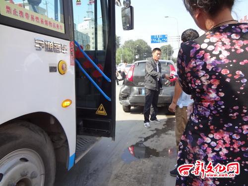 长春147路公交与轿车追尾 轿车车主怒踹公交车