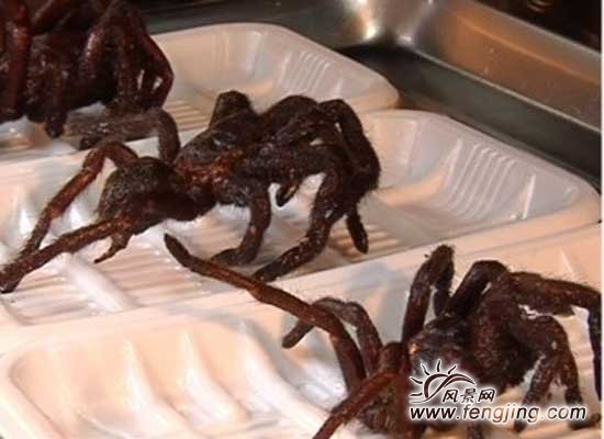 广州人喜欢吃蝎子、蜘蛛和其他的昆虫,是因为地处岭南,气候潮湿,先民们选择吃油炸昆虫来祛除湿气,却发现了它们的好滋味,因此在口耳相传之下,逐渐成为了当地人爱吃的一种零嘴。